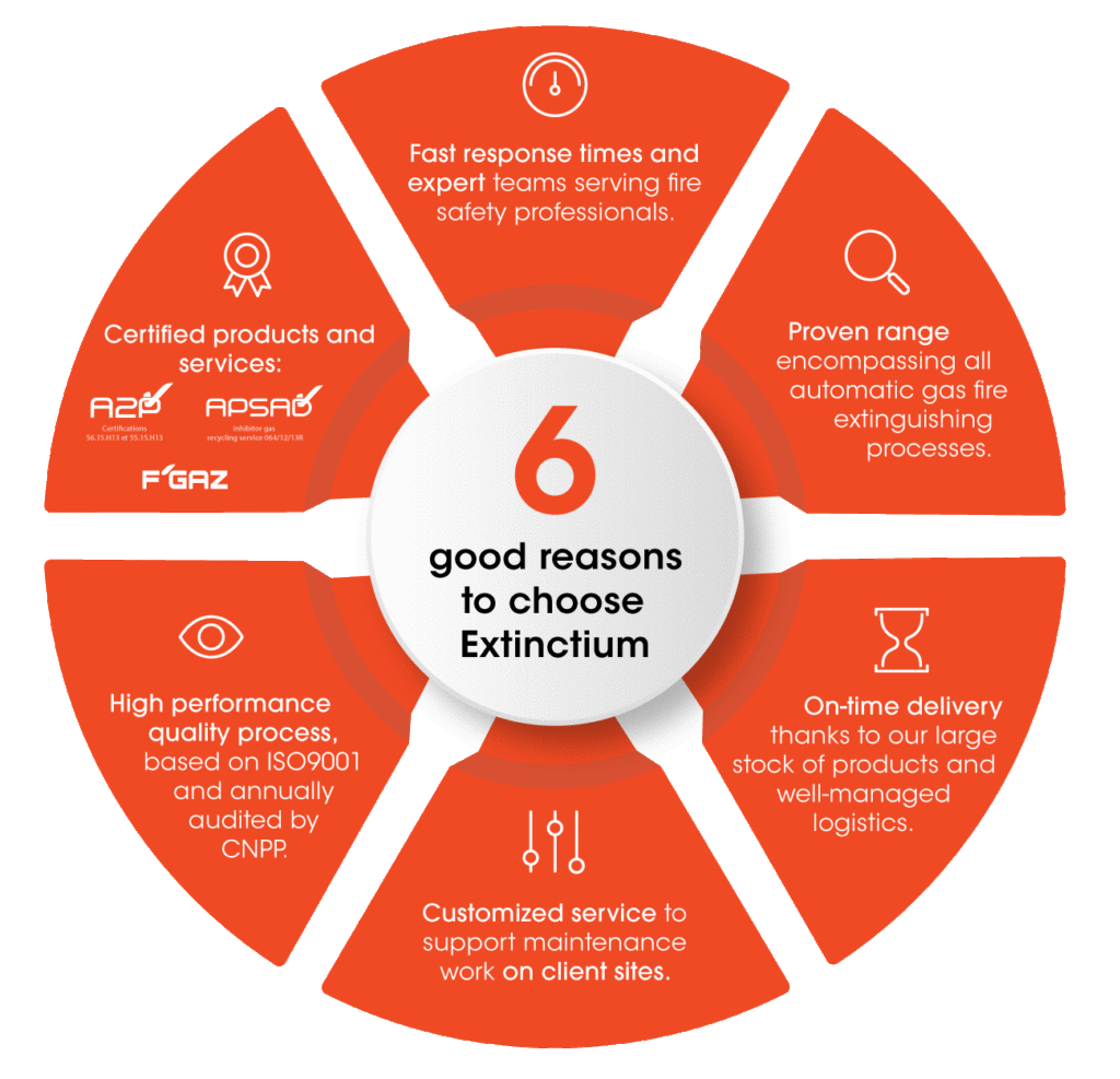 Implantée à Méry-sur-Oise, au nord de Paris, Extinctium a pour vocation d’accompagner les installateurs spécialisés en sécurité incendie, en leur assurant un soutien lors de la conception, de l’installation et de la maintenance de leurs systèmes d’extinction par gaz. Cette collaboration garantit à l’exploitant la conformité de son installation et une qualité de service optimale.